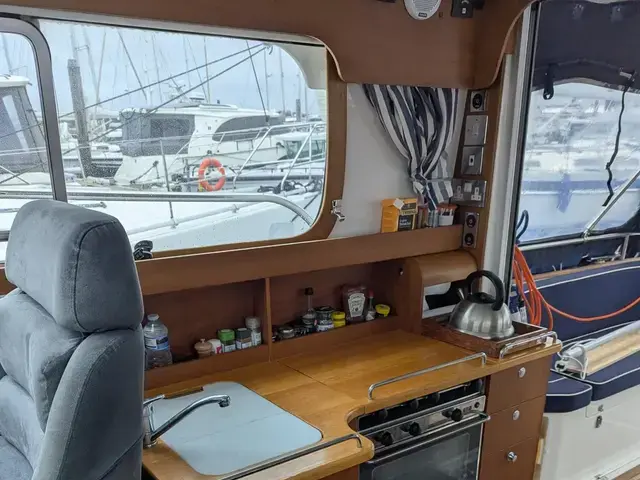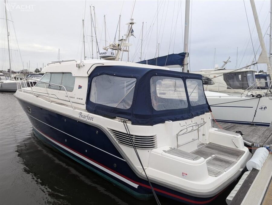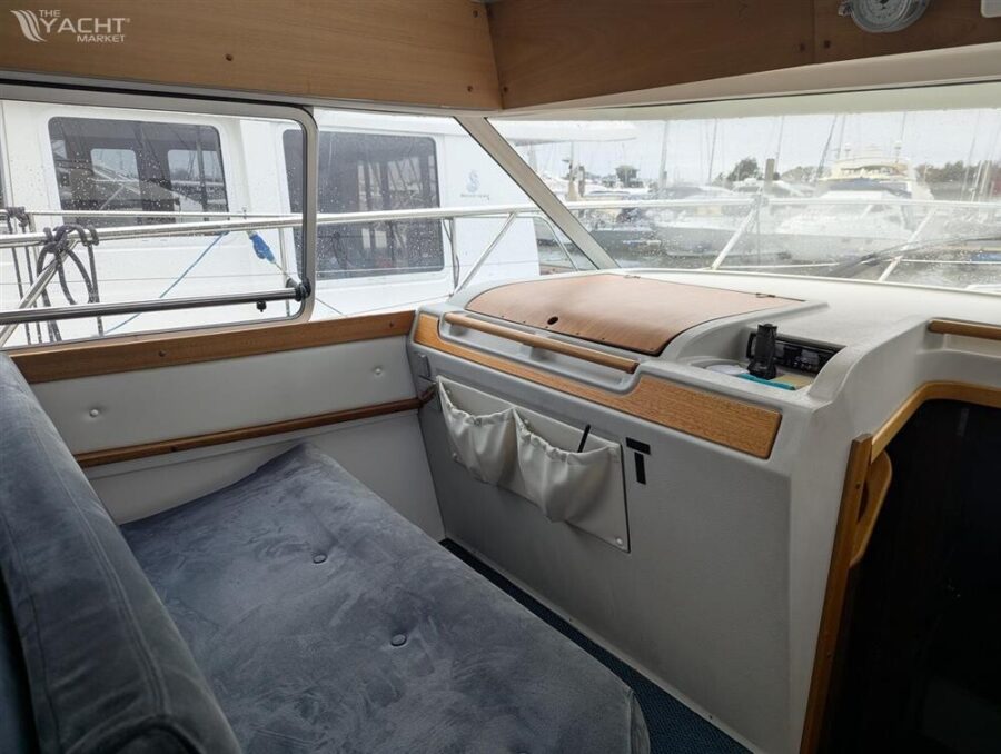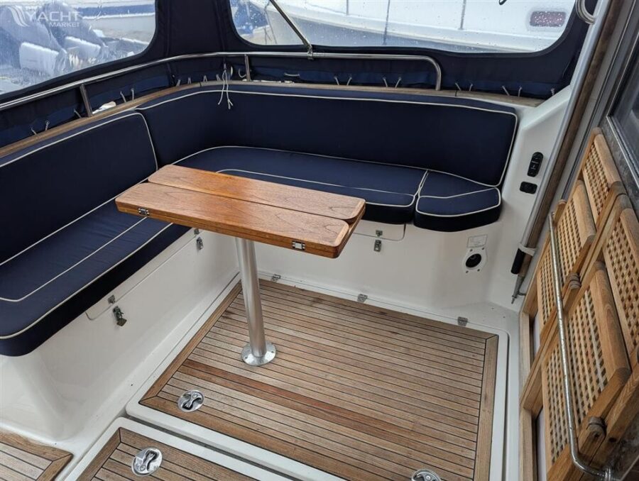 This Nimbus 350 Coupe, located in Lymington, Hampshire, United Kingdom, is a meticulously maintained motor cruiser boasting an array of features. Produced in 2005 and powered by twin 240hp Yanmar diesel engines, this vessel offers spacious accommodations with two double berths across two cabins, complemented by a well-appointed galley featuring a hob, sink, fridge, and storage. The saloon showcases a folding teak table with an expansive seating area, while the cockpit is adorned with teak decking and includes a folding aft deck table with seating. Key features include a Simrad NSS12 evo3s MFD with radar, bow thruster, automatic fire extinguishers, and a comprehensive electronics suite. Additional comforts encompass Eberspacher heating, full cockpit enclosure, and Nimbus-branded accessories, ensuring an exquisite cruising experience. The blue hull, professionally vinyl wrapped, underscores the vessel’s timeless appeal, making it an ideal choice for discerning yachtsmen.