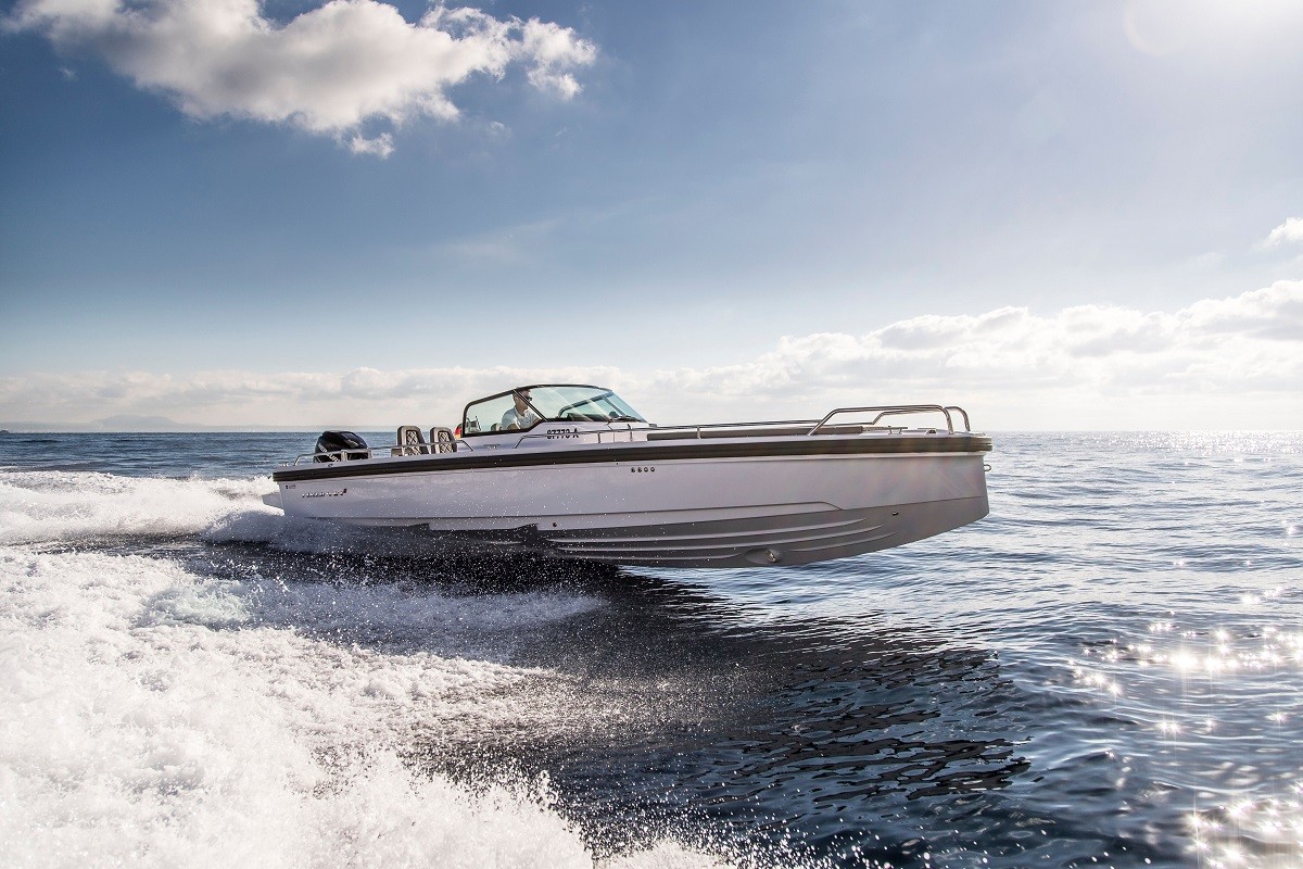 ▶ Make EnquiryHULL AND DECK: 130mm added length and 50mm added width, raised hull sides by 80mm, softened spray rails and rounded keel shape. New stringer system based on 37 range. Improved shape and water deflection on bow thruster flanges. Vinylester resin for the first coat of the hull in GRP material, New anti-skid pattern on deck and deck hatches, enlarged service hatch on fore deck, Revised large bumper list with improved cushioning in grey colour, Wraparound windscreen and side windows in toughened glass and tinted light green with aluminium window profile painted in white, Pulpit and cockpit handles in hand polished stainless steel, 6* Stainless steel cleats aft, mid and bow, Fender storage on aft Deck SB and Port sides, Widened bathing platform with integrated Esthec Platinum decking with and telescopic bathing ladder, Self-draining deck with large diameter scuppers, Integrated engine bracket for outboard engines. Axopar 3D lettering on hull sides and model designation on side glasses.